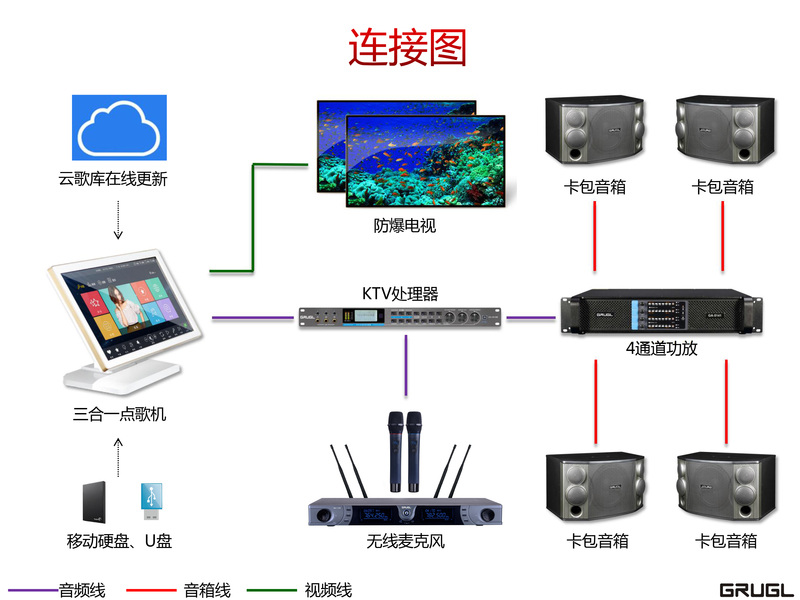 专业卡拉OK音视频系统解决方案(50平米卡拉OK房)