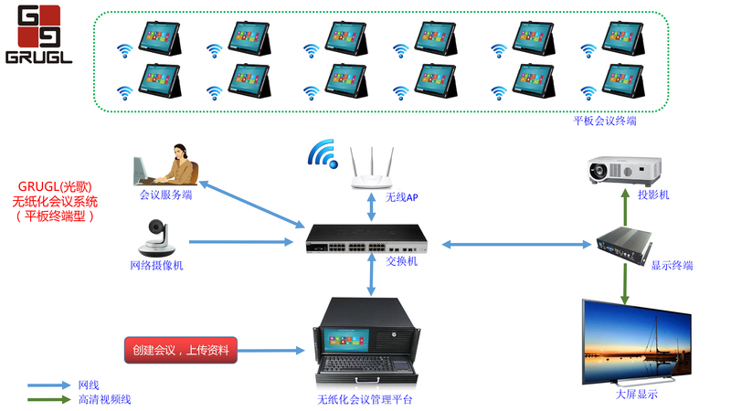 GRUGL(光歌)无纸化会议系统拓扑图-----平板终端型:
