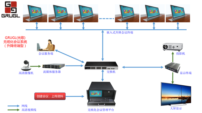 GRUGL(光歌)无纸化会议系统拓扑图------升降终端型: