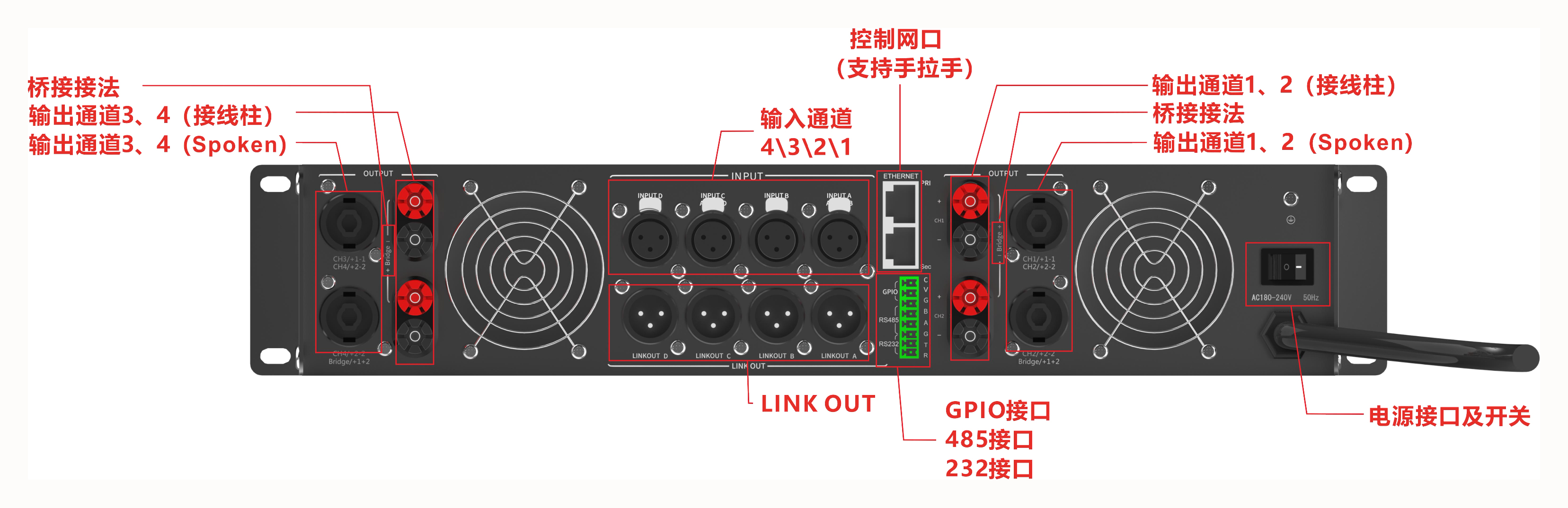 输入接口 | 平衡输入4*XLR |