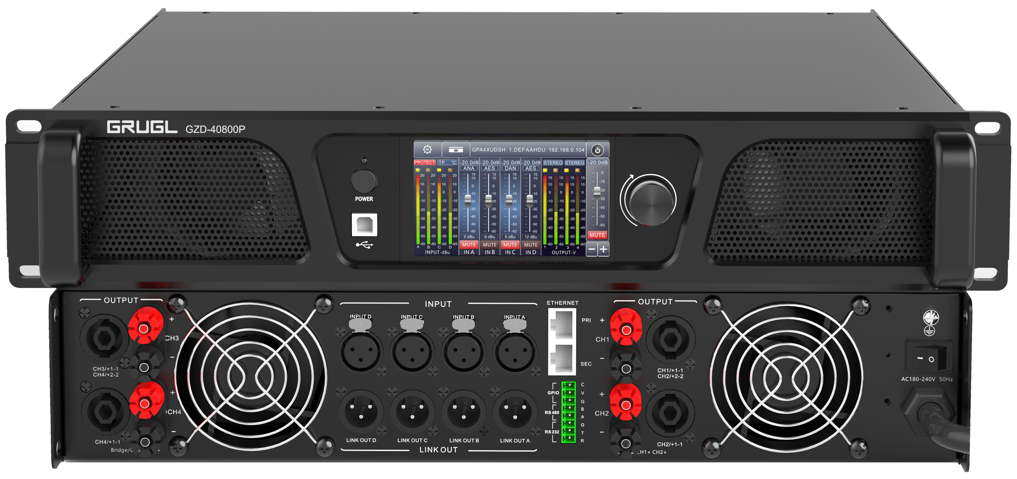 GZD-40800P: 四通道DSP网络功放(4*800W)