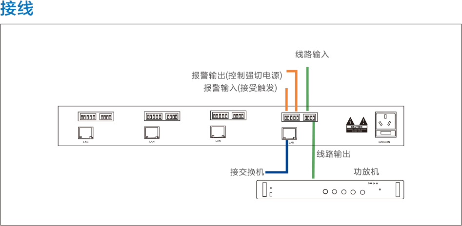 IP网络音频接口单元,内嵌本公司自主知识产权的数字网络音频技术,配备了音频输入,RJ45网络,短路输入输出等接口。既可以把音频输入口接入的信号通过网络广播到其他终端,也可接收其他终端或服务器发起的广播。