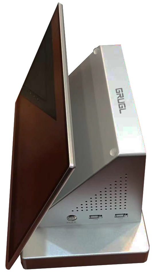 一种用于会议桌上桌面式电脑显示器和桌牌一体无纸化终端,本产品新型更多实用于无纸化会议配套设备,以液晶触摸显示终端和为中心,整合高清视频及统一通信功能、智能多屏交互共享功能、智能会议中控、音视频采集和扩声系统等,形成一个“以人为本”的智能会议体验。