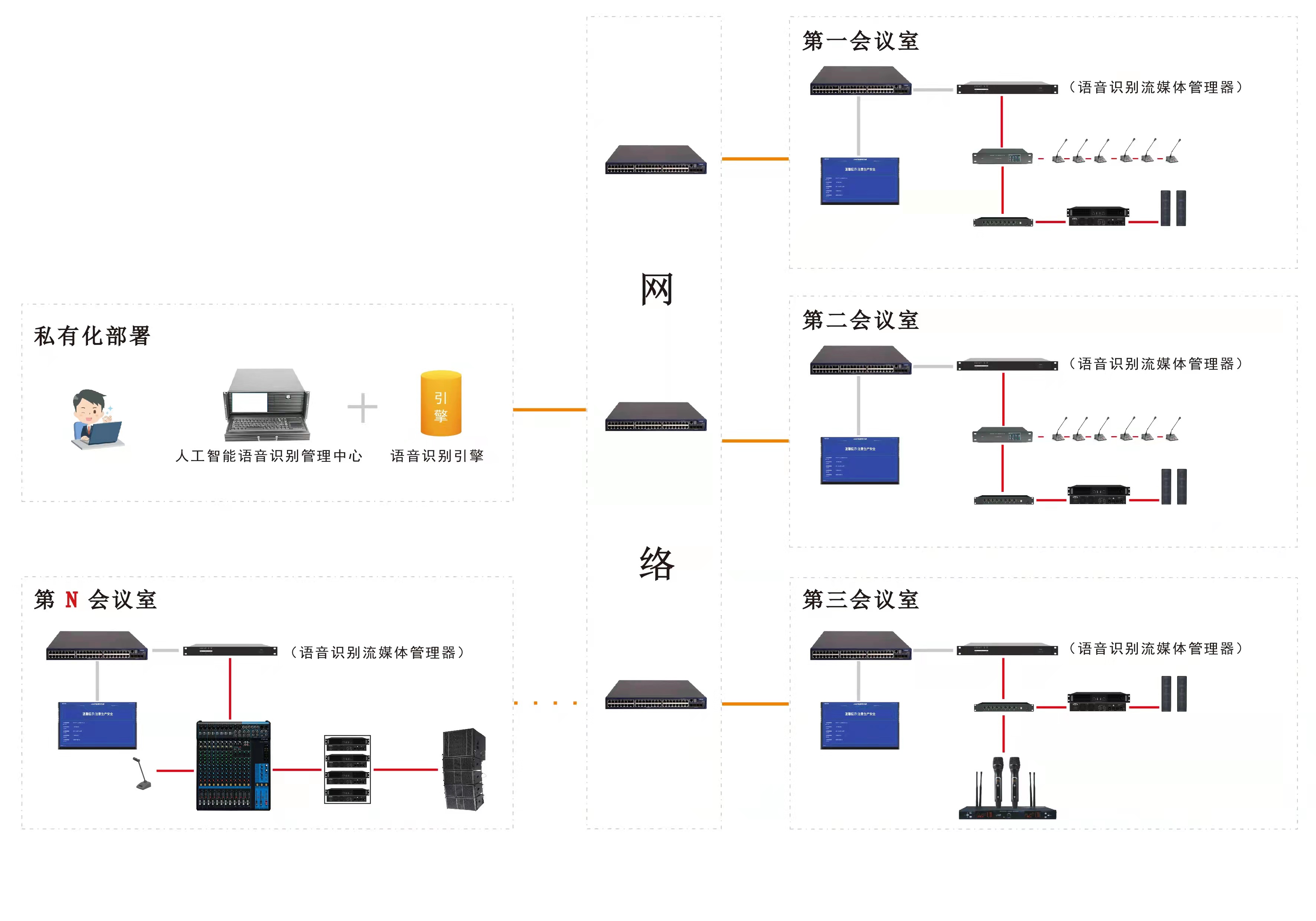 分布式采集:支持跨会议室,跨区域实时分布式采集语音;